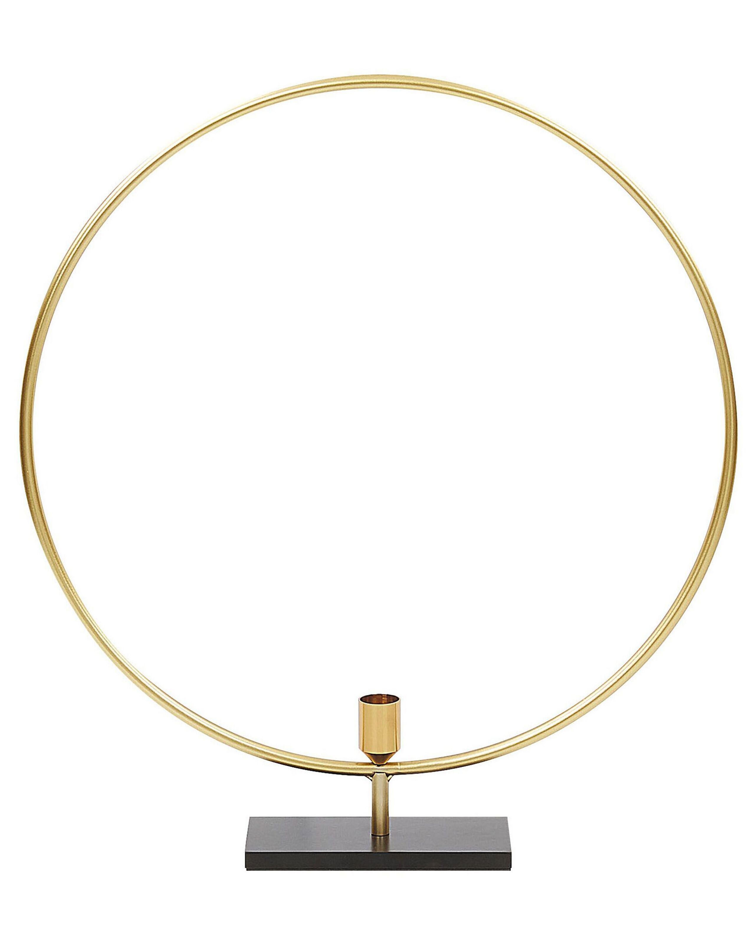 Make sure that your dining area is well-lit and decorated. A golden candle holder placed inside an openwork round shape is a delicate ornament for a meticulously designed living or dining room. Light a candle, sit by a table with your loved one and enjoy a charming evening with this glamour style decoration. Details: Color: Gold, Black. Main material: Metal. Weight: 1 Assembly: Does Not Require Assembly