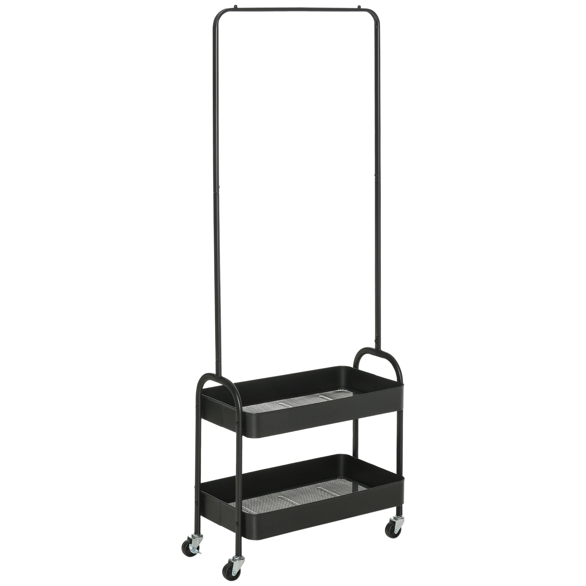 Metal Clothes Rack with Shoe Storage, Clothing Rail on Wheels, Freestanding Hall Tree, Coat Stand with 2 Storage Shelf, Black
