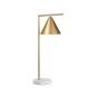 Elevate your space with a touch of glam style with this table lamp. Featuring a striking gold cone shade and leg, expertly joined with a marble round base, this lamp exudes luxury and sophistication and is functional at the same time. Thanks to its design, the lamp will work great as a task light, perfect for the bedroom when reading a book or your home office. Details: Color: Gold, White. Main material: Iron. Additional material: Marble. Weight: 3 Assembly: Does Not Require Assembly