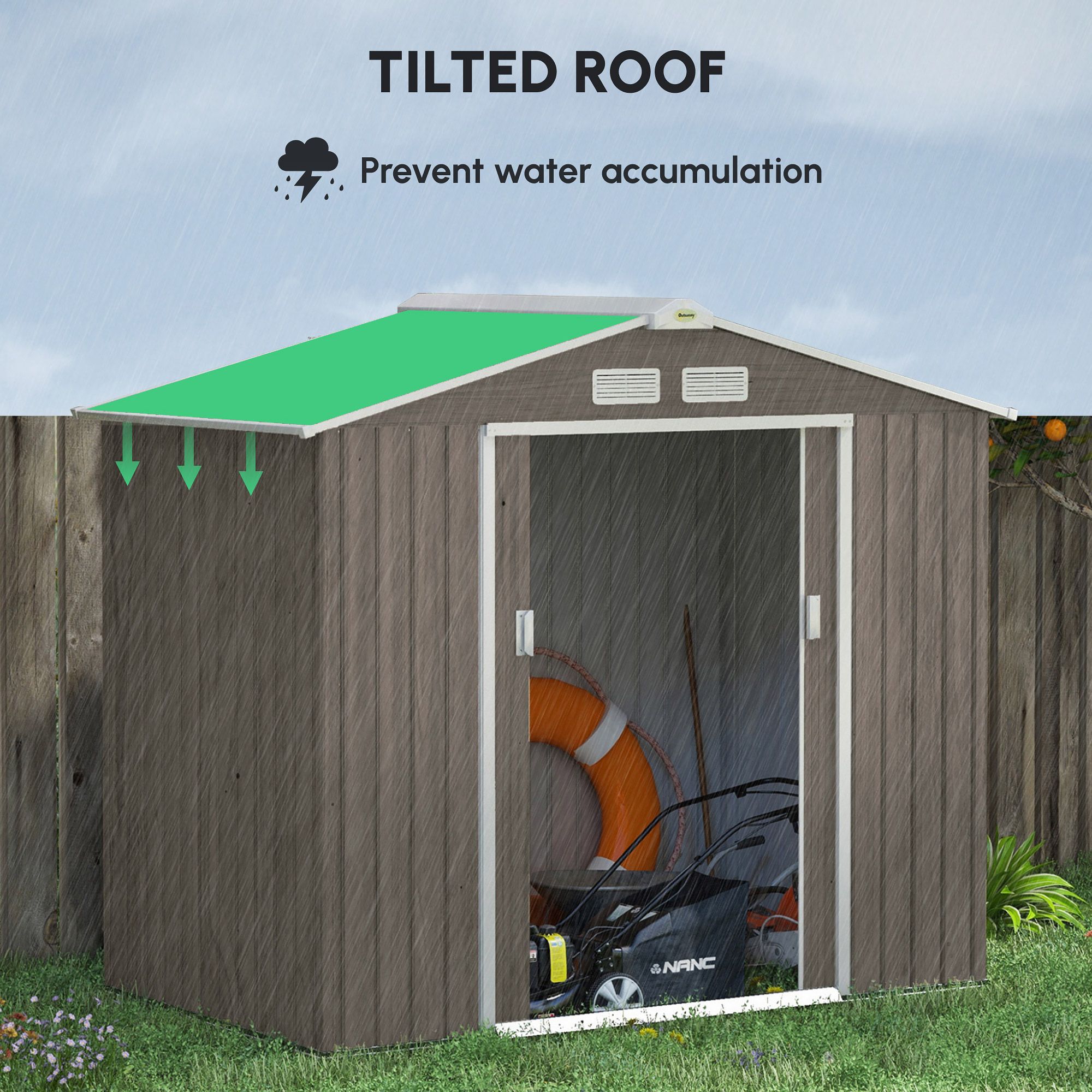 Metal Double Doors Garden Storage Shed 7 x 4ft with Vents, Floor Foundation and Lockable Door - Light Brown