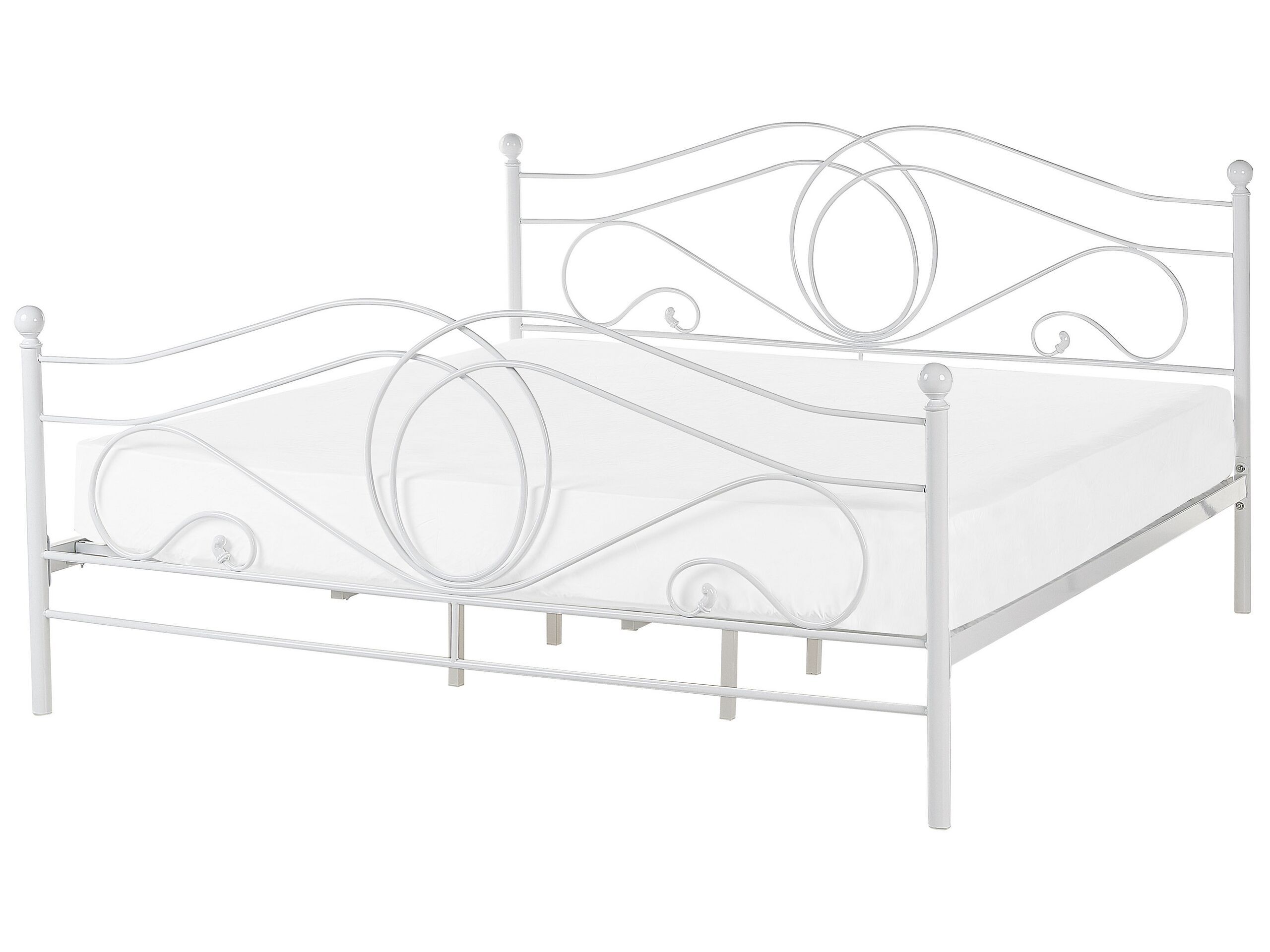 This bed stands out with its elegance and romantic mood it brings. Powder-coated metal in sophisticated white is durable and exceptionally low maintenance. Elegant metalwork on footrest and headrest brings a romantic vibe to any modern, retro and Scandinavian style bedroom. Details: Color: White. Main material: Metal. Additional material: Poplar Wood. Weight: 32 Assembly: Full Assembly Required Wood type: Populus Weight Capacity: 250 Legs Height: 31 Sleeping Surface: 180x200