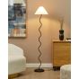Inspired by vintage forms, this eye-catching floor lamp exudes timeless charm. Featuring a wavy metal base topped with a pleated cone lampshade, it casts a warm glow. Functional and decorative, it will effortlessly enhance any room's ambience. Details: Color: White, Black. Main material: Iron. Additional material: Synthetic Material. Weight: 3 Assembly: Partial Assembly Required