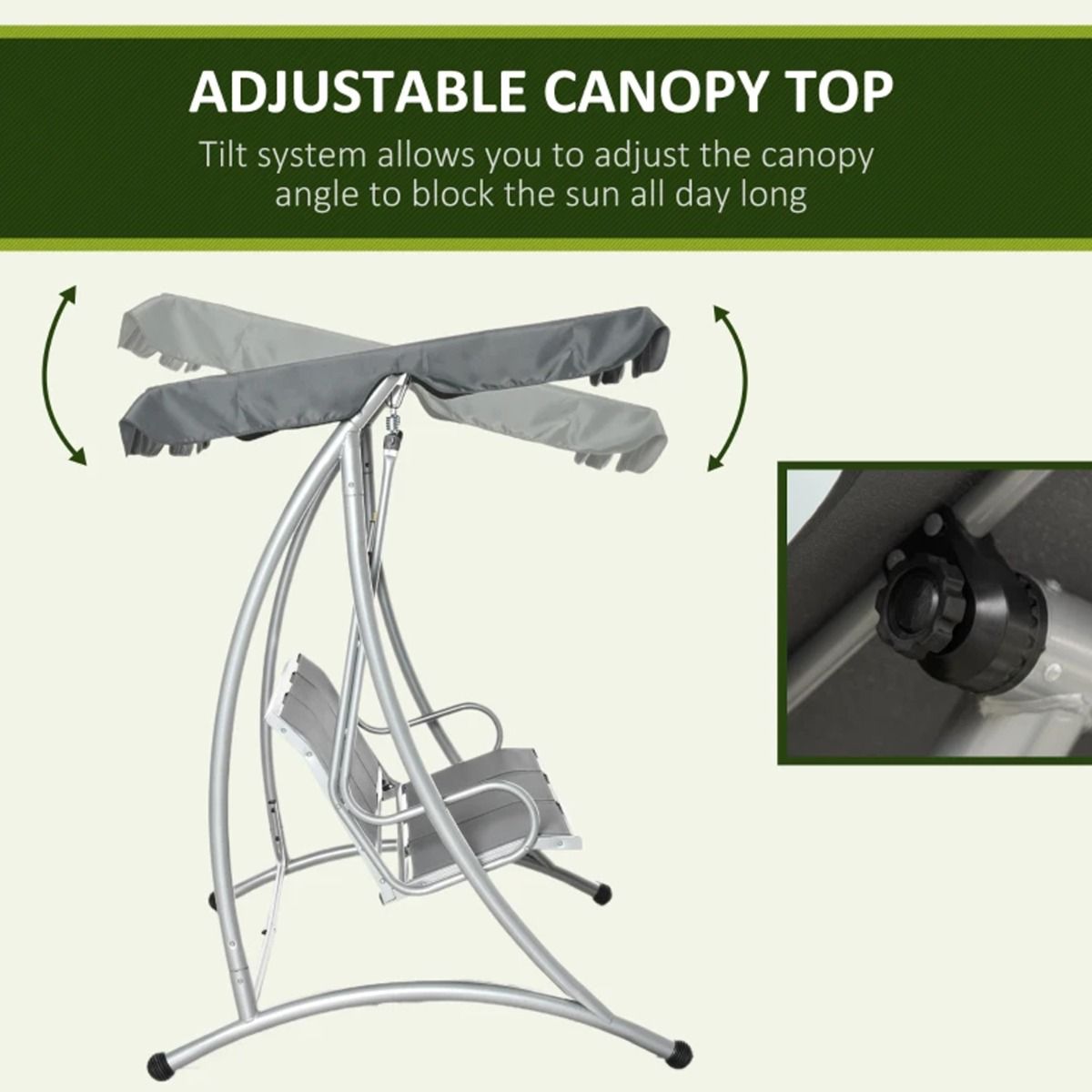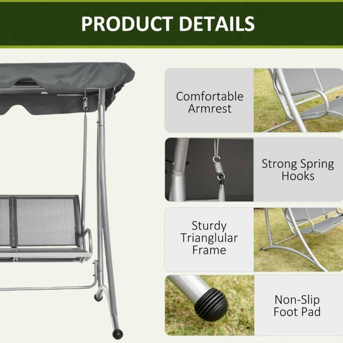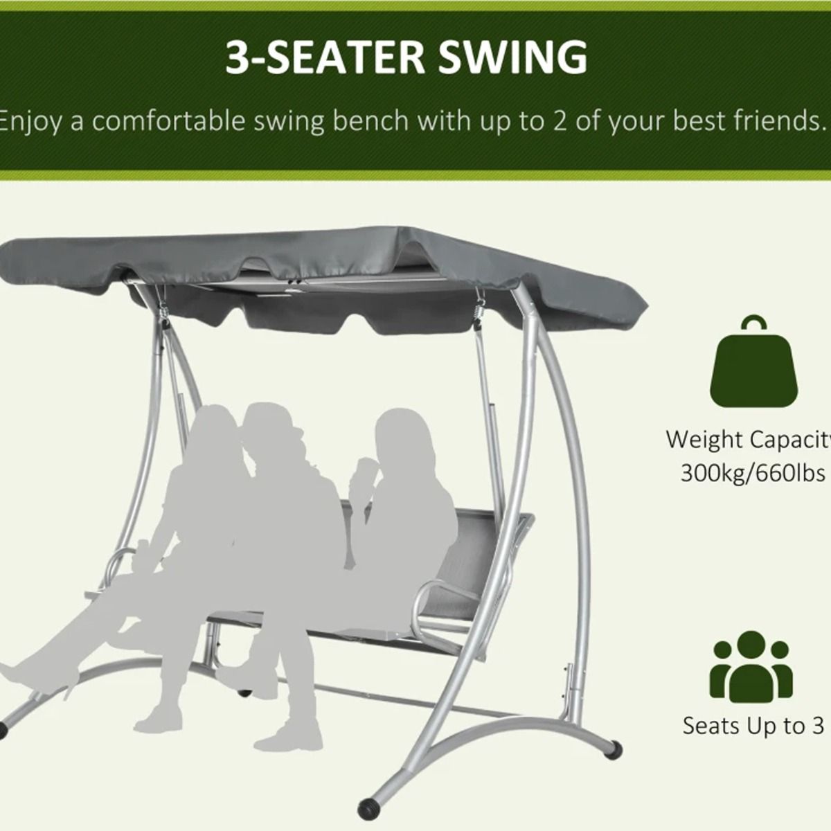 - Free standing outdoor swing designed for 3 people to sit comfortably
