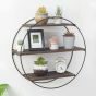 Metal Frame Round Wall Floating Shelves Wooden Shelf Storage - Wood