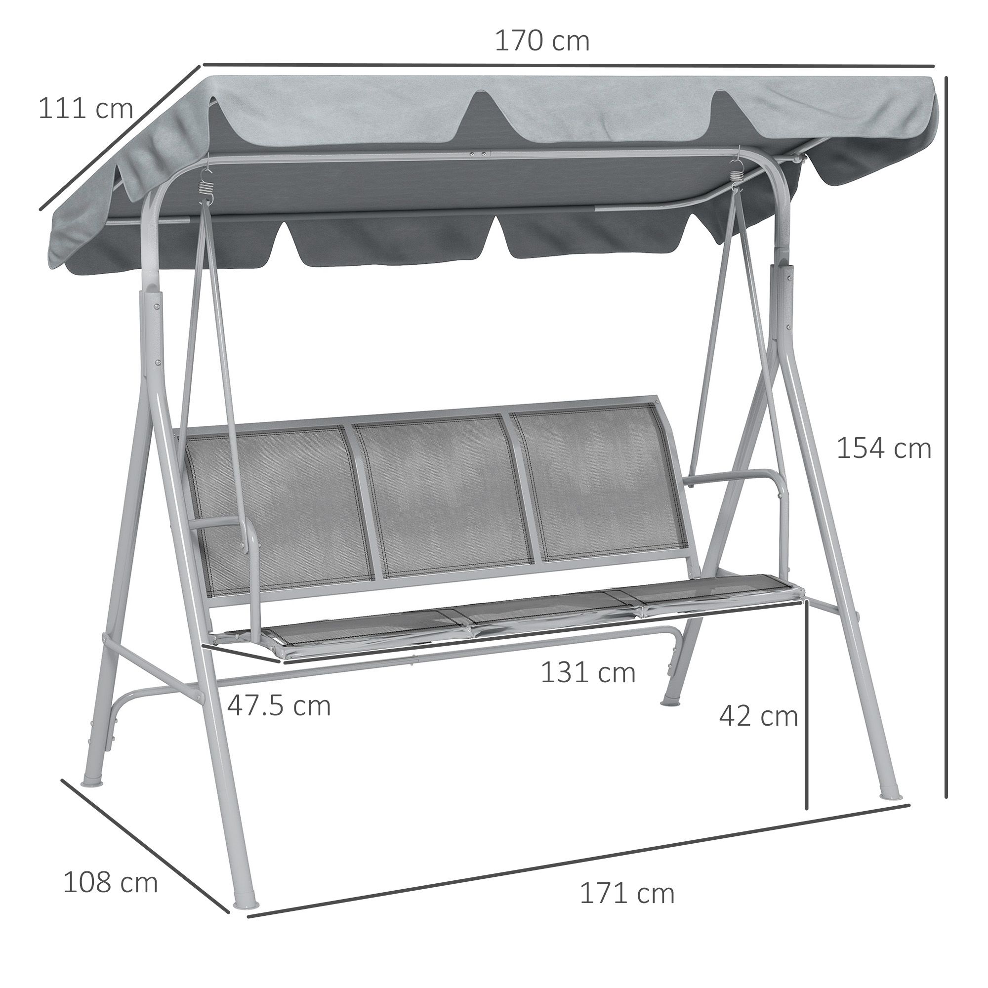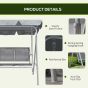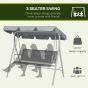 Metal Garden Swing Chair, 3-Seater Swing Seat, Patio Hammock Bench Canopy Lounger, Light Grey