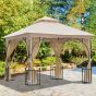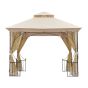 Bring life back to your outdoor living space with this new gazebo. It offers optimum protection against harmful UV sunlight and rain. The slim lines and edge design ensures premium usage while the included ground stakes offer added stability. The powder coated rust-resistant metal frame is designed to last for years of usage. The double tiers on the top offer better ventilation.