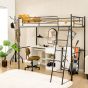 Metal Loft Bed with Integrated Ladder and Full-length Guardrails-Black