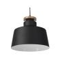 Modern pendant lamp in a simple style, perfect as an over table lighting in Scandinavian, industrial or contemporary interiors. The details such as an element in a wood-like finish and a shade painted in matt black add a retro flair to any room. Constructed in an oval shape, the lamp sheds a pleasant, yet focused light perfect for work. Details: Color: Black. Main material: Aluminium. Additional material: Synthetic Material. Weight: 1 Assembly: Requires Installation