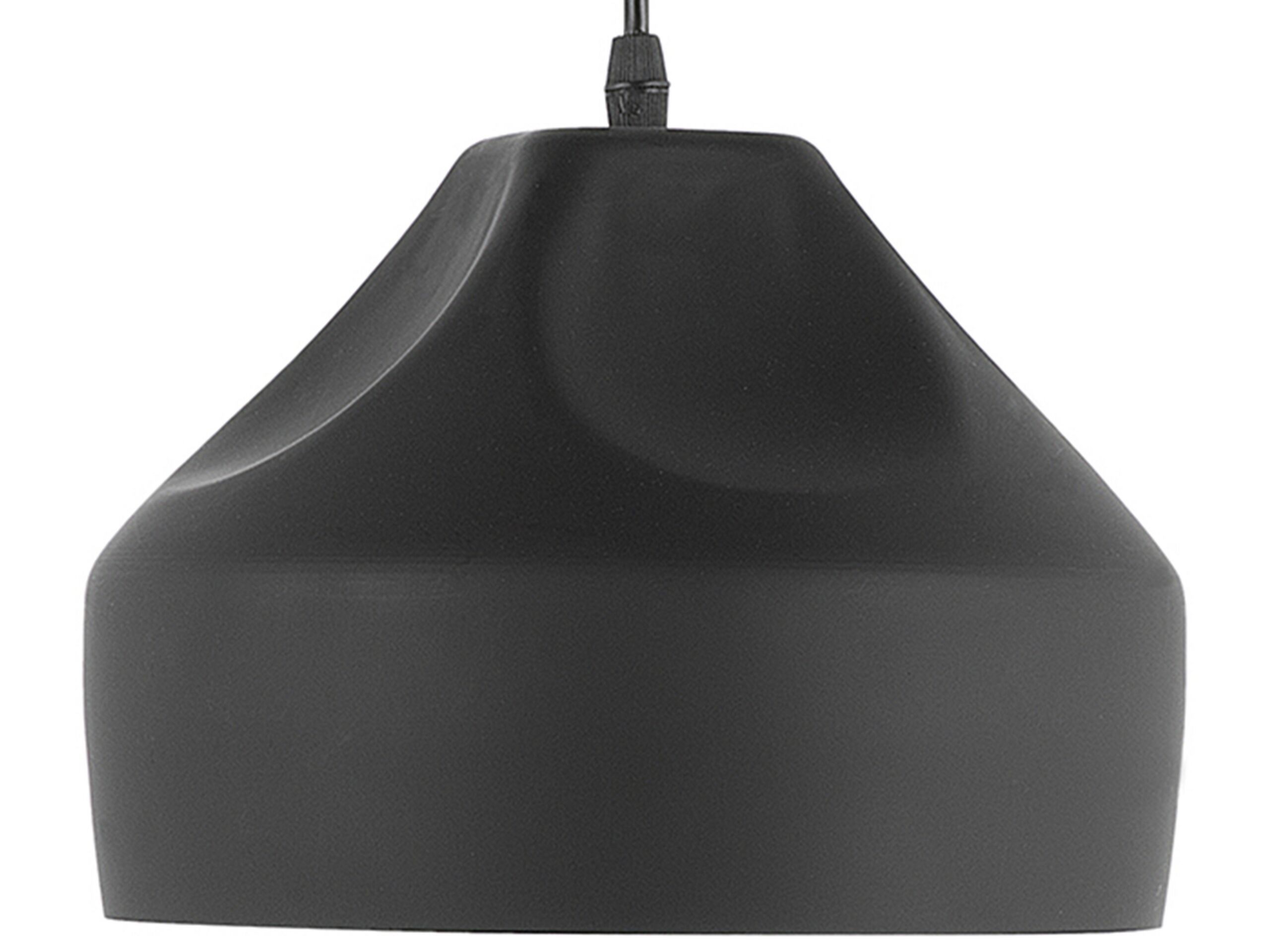 This quirky modernistic pendant lamp with a matte black finish would accentuate any chosen space, from office area, kitchen, dining area or bedroom. With a white interior to help distribute a warm intense glow, it's perfect as a task light or for brightening up any contemporary, urban or industrial interior. Details: Color: Black. Main material: Metal. Additional material: PVC. Weight: 1 Assembly: Requires Installation