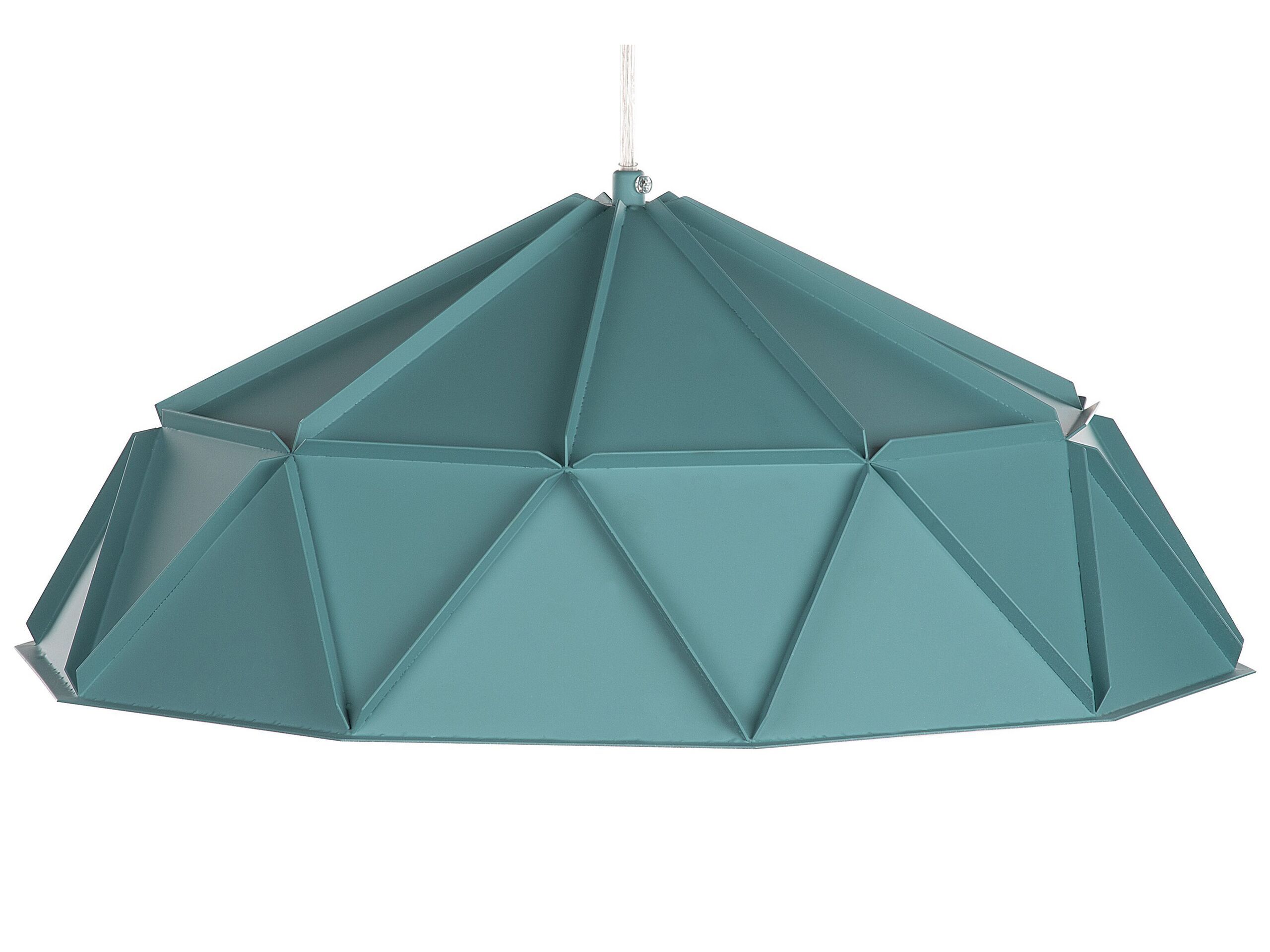 Featuring clean contemporary design, this ambient pendant lamp brings a trendy urban flair to any interior or office space. The shade geometric silhouette with multiple sides is made of robust metal in a turquoise. Match it with a Scandinavian, minimalistic or modern style living area to achieve a trendy look. Details: Color: Blue. Main material: Metal. Additional material: PVC. Weight: 3 Assembly: Requires Installation