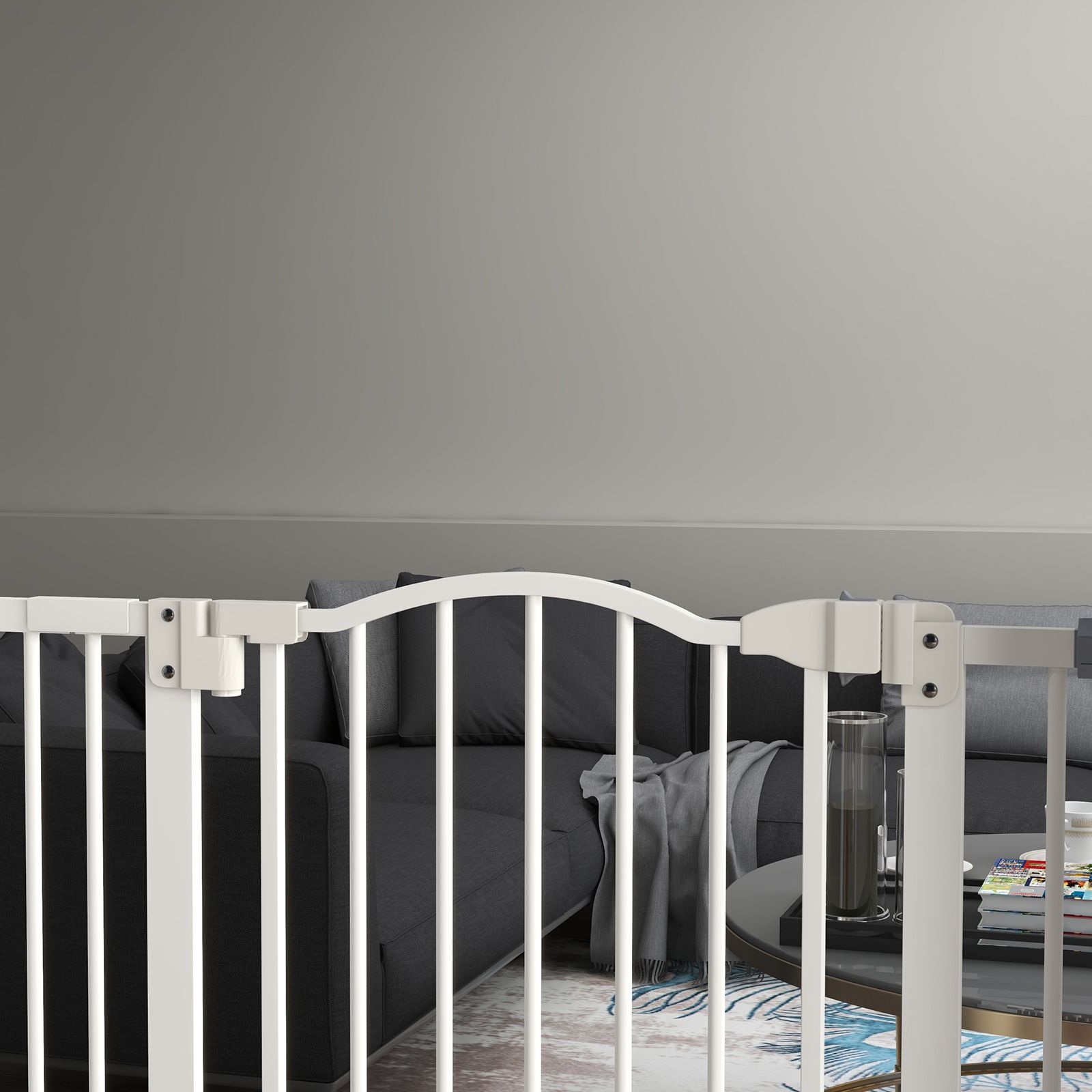 Keep pets away from specific places easily with this safety gate from PawHut. It's made from metal for strength, and its width can be adjusted between 74cm and 87cm, meaning it will fit properly in door frames and other passages. Fitted with a middle door to pass when needed, the slide-and-lift handle is easy to use so you can walk through quickly. Two rotating locks on the bottom allow the door to opened both ways, with a double locking mechanism to finish for extra safety.