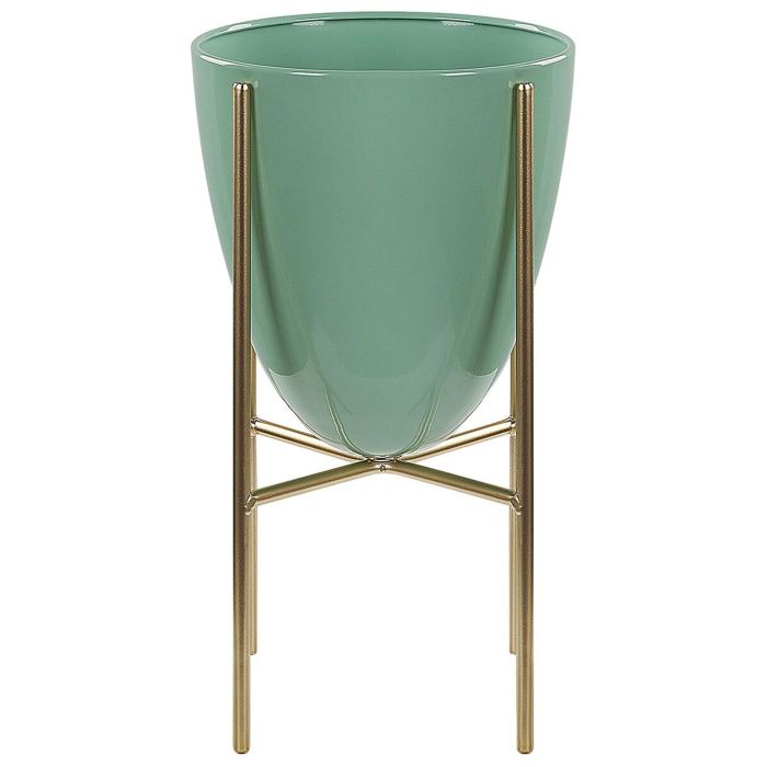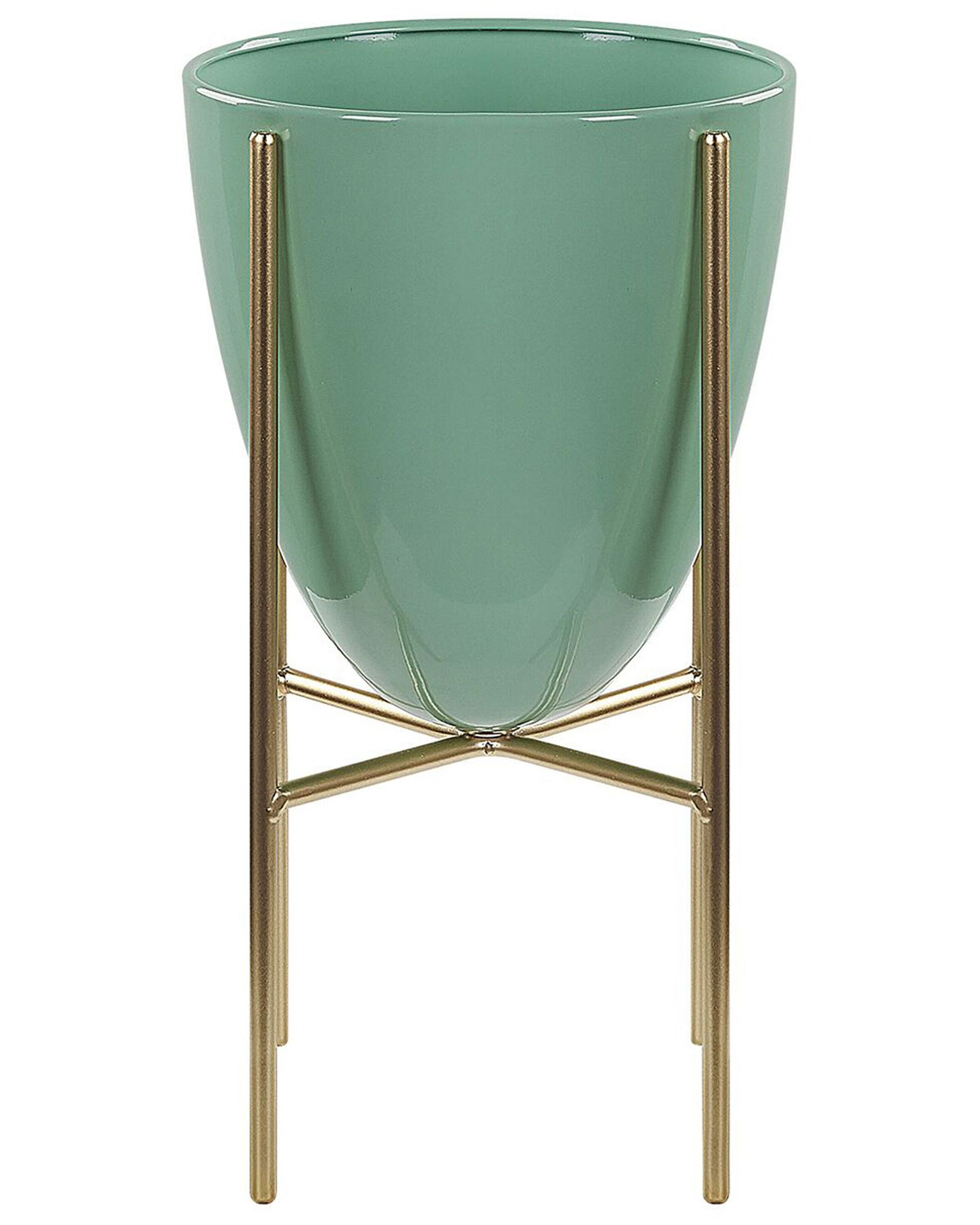 Metal Plant Pot Stand 16 x 16 x 31 cm Green with Gold LEFKI