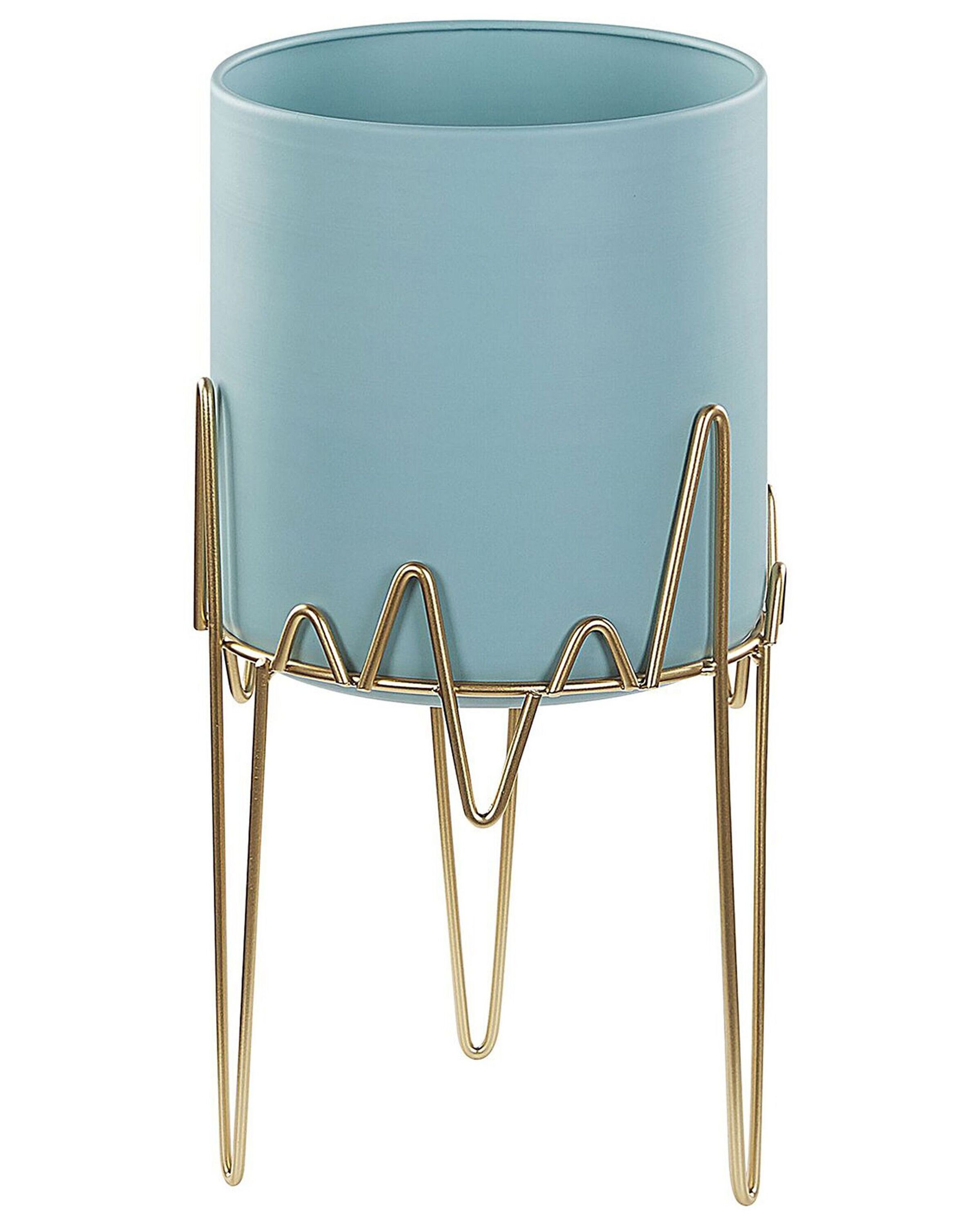 Metal Plant Pot Stand 19 x 19 x 39 cm Blue with Gold KALANDRA