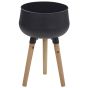 Metal Plant Pot Stand 30 x 30 x 47 cm Black with Light Wood AGROS
