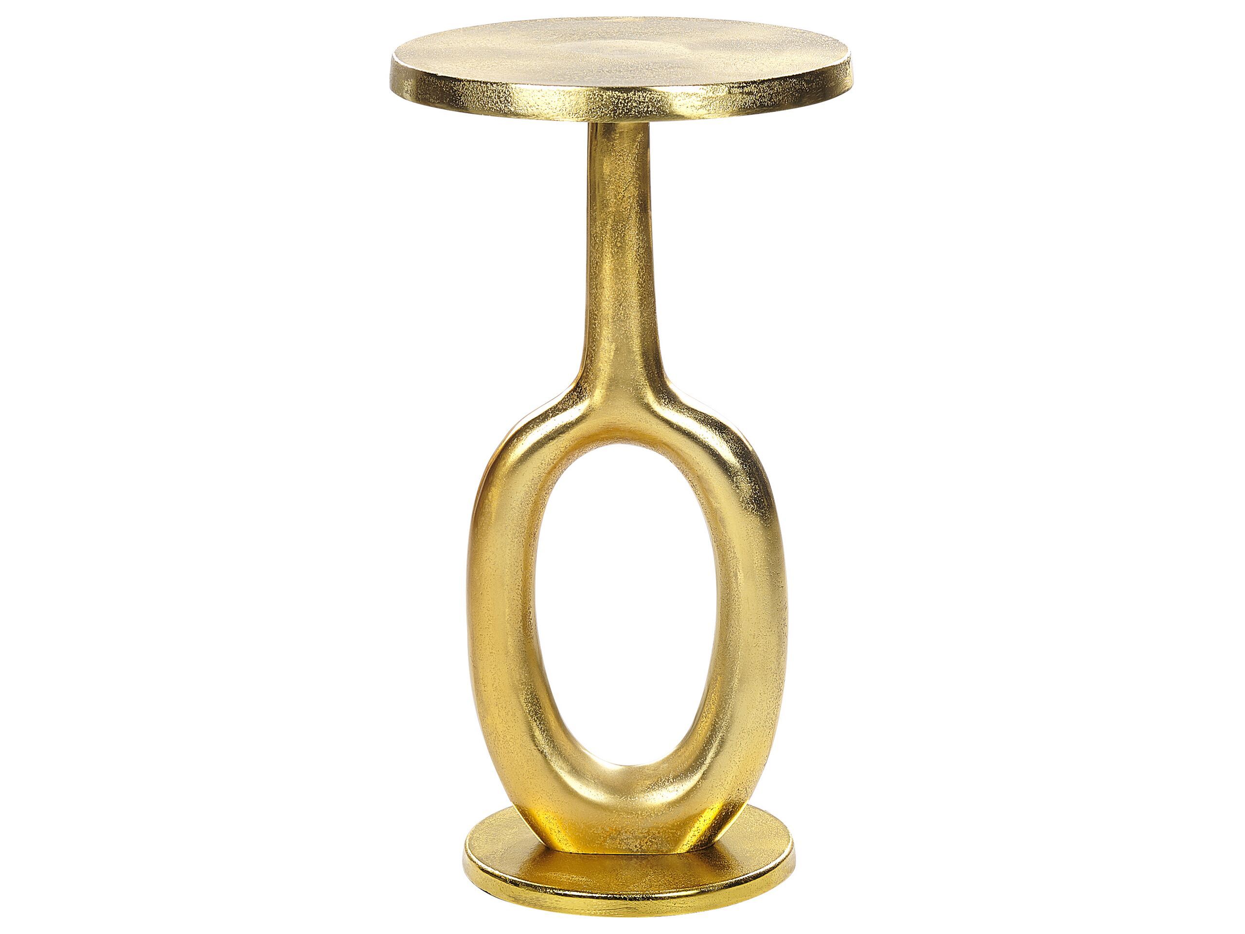 Introduce this decorative side table to your living room to instantly refresh it with a mix of retro and contemporary vibe. Made out of aluminium, the piece is characterized by its unique shape and a distressed finish. The whole piece is placed on a round base, so you don't have to worry about it toppling. Details: Color: Gold. Main material: Aluminium. Additional material: Aluminium. Weight: 3 Assembly: Partial Assembly Required Weight Capacity: 20