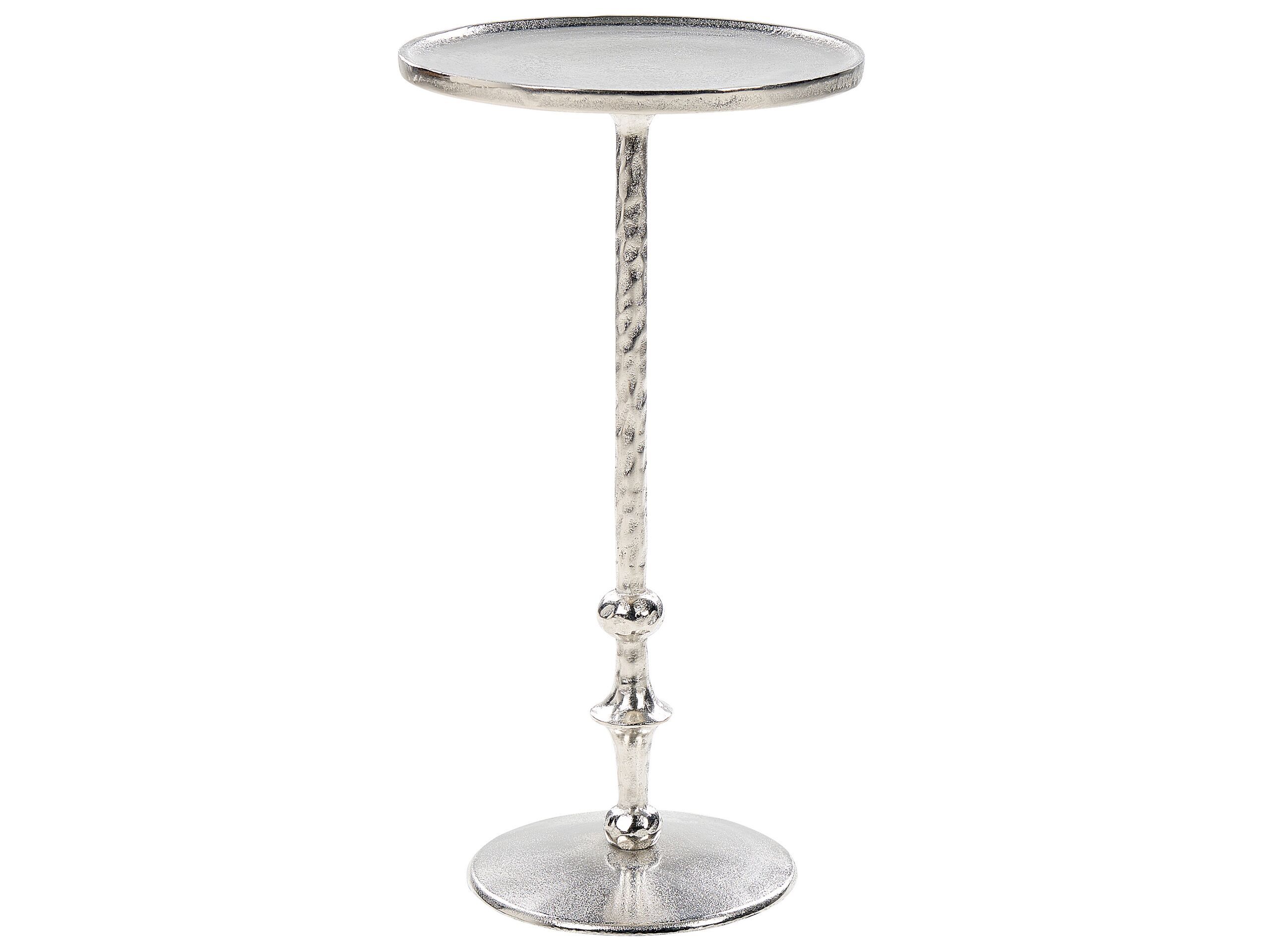 Your framed photos, potted plant or a fruit bowl will look fantastic when placed on this stylish end table. Presenting ornamental base and glossy silver finish, it will certainly turn the eyes of your guests. The piece comes handy when styled next to your sofa, but you can use it as well in a hallway or a bedroom as a spot for all kind of knick-knacks. Combining traditional look with modern form, it adds plenty of character to any interior. Details: Color: Silver. Main material: Aluminium. Additional material: Aluminium. Weight: 3 Assembly: Partial Assembly Required Weight Capacity: 12