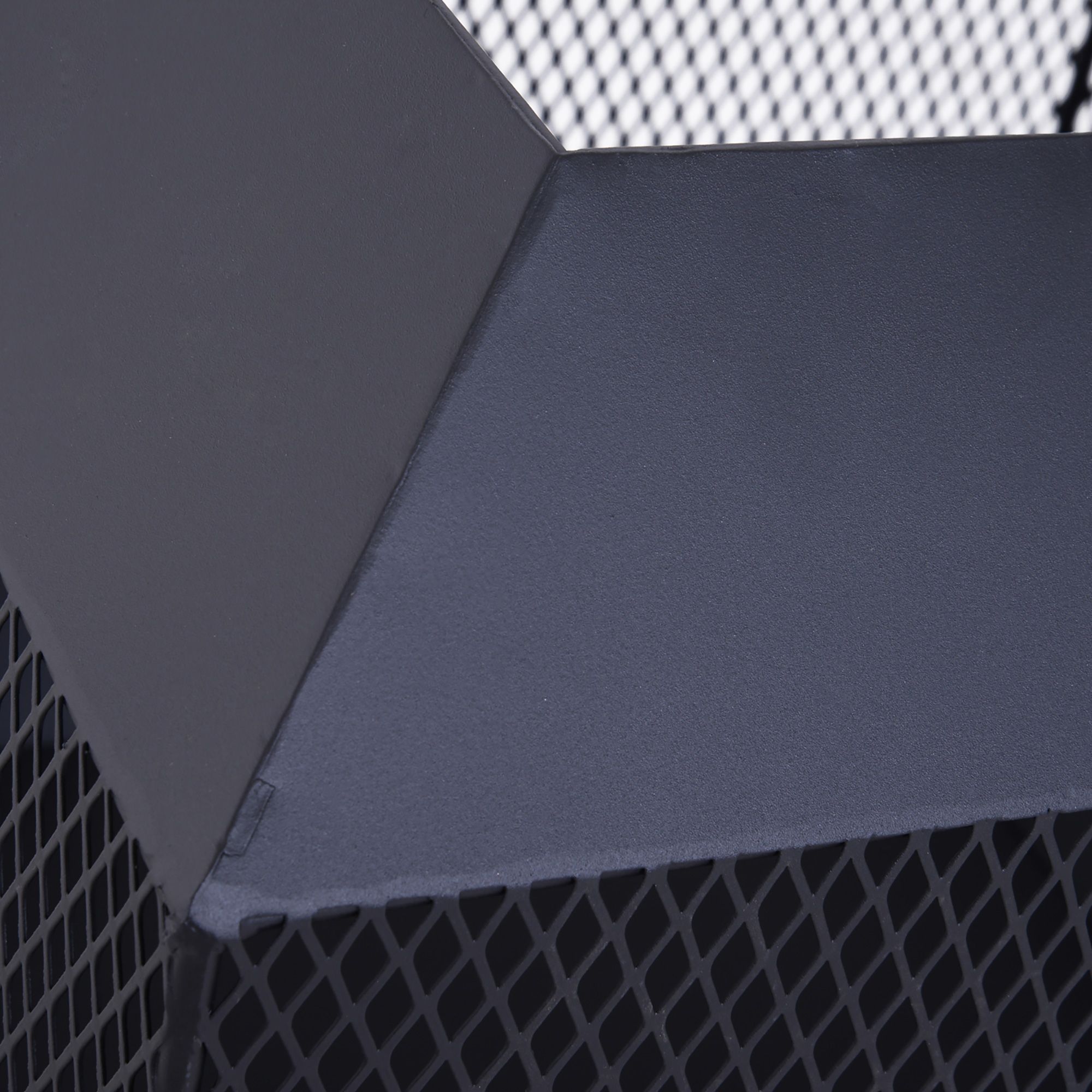 Metal Square Fire Pit Outdoor Mesh Firepit Brazier w/ Lid, Log Grate, Poker for Backyard, Camping, Wood Burning Stove, 44 x 44 x 40cm, Black