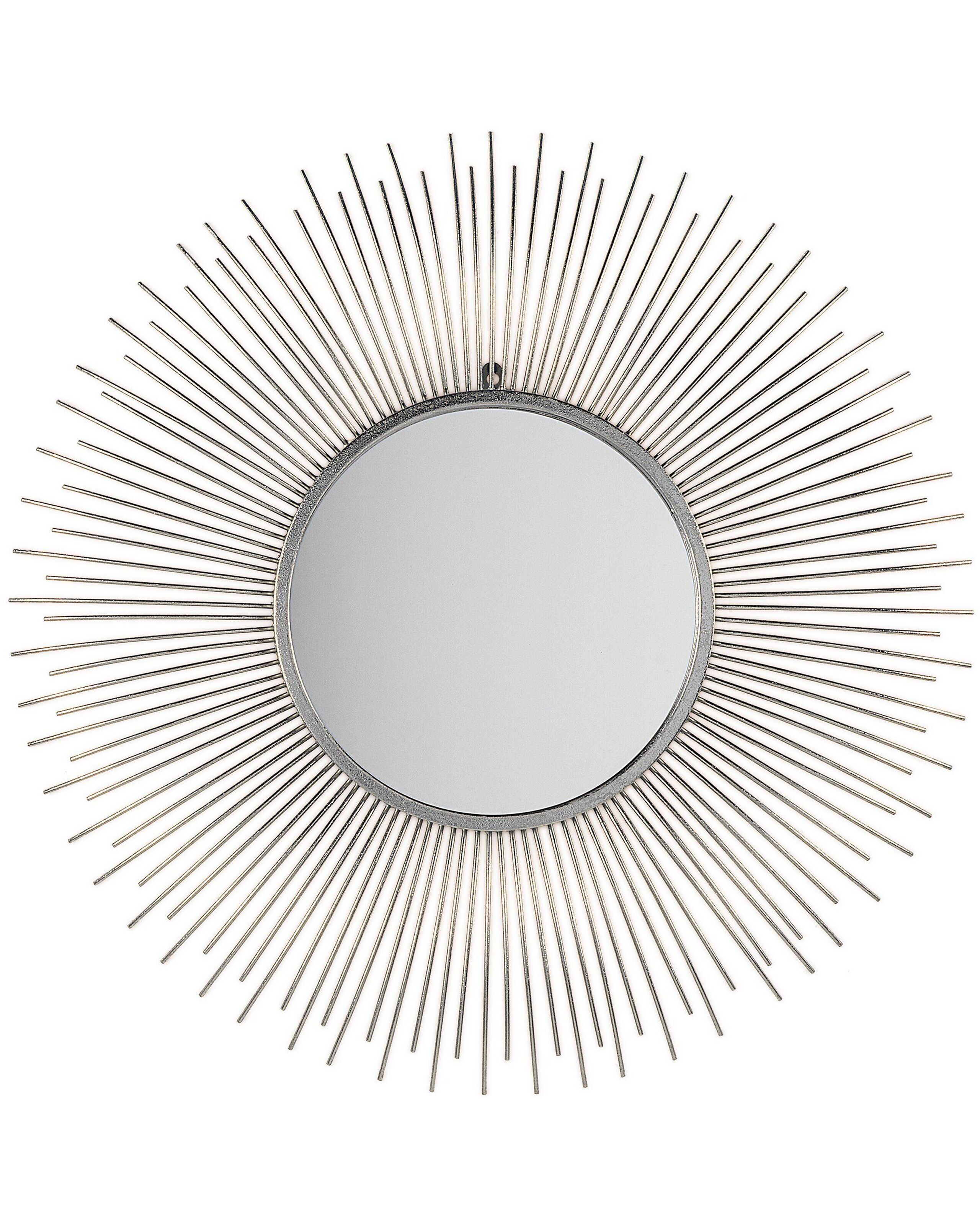 Liven up any room décor with the enchanting look of this circular mirror. The bold design of the starburst-shaped frame works well with eclectic, vintage and boho interiors, creating a vivid wall accent. Style it in your master suite as a vanity mirror or mount in a living area to bring in more light. Details: Color: Silver. Main material: Metal. Additional material: Glass. Weight: 6 Assembly: Does Not Require Assembly