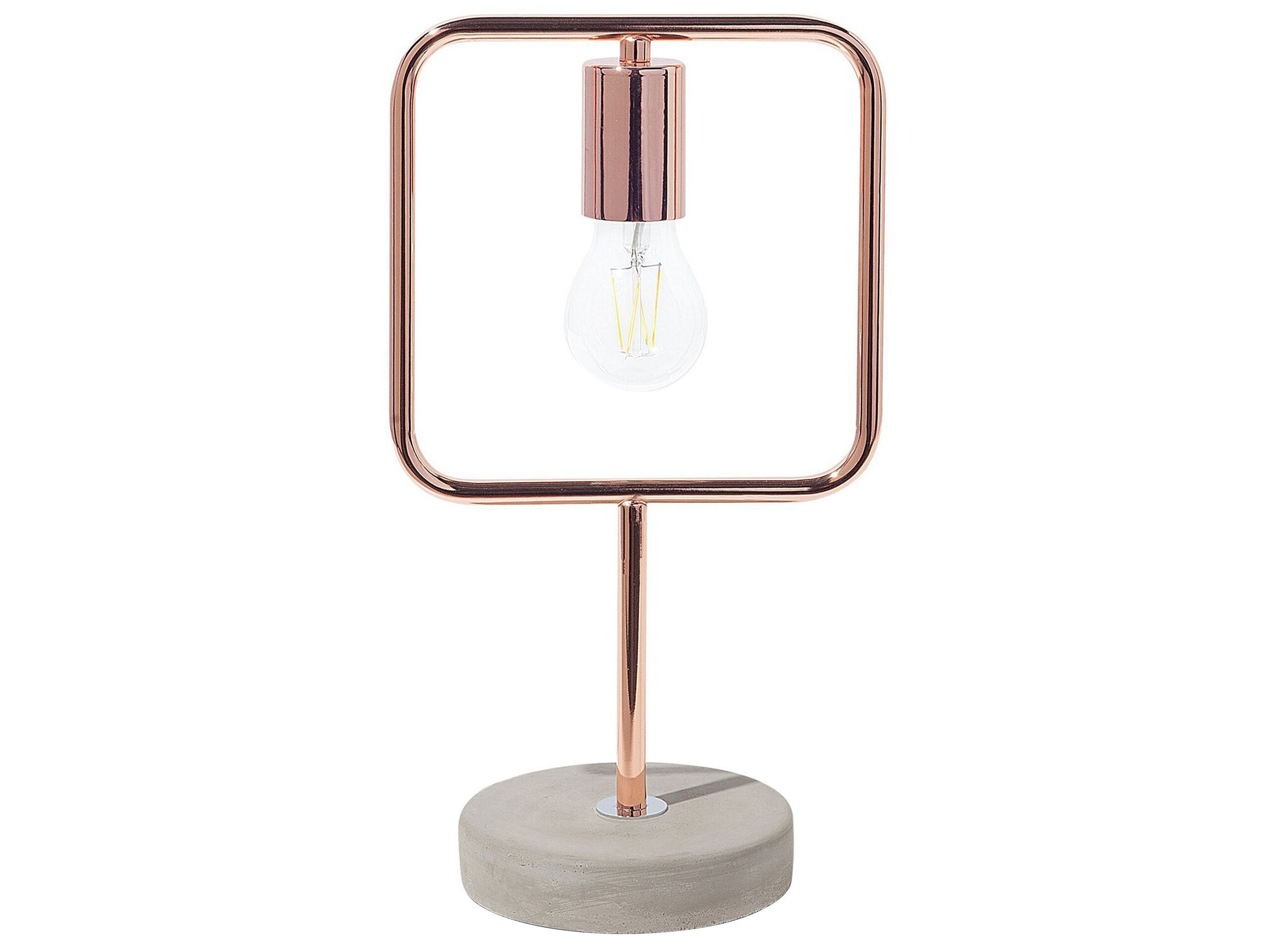 The fusion of glam and industrial forms, this table lamp is a glamorous accent piece that decorates any coffee table, dresser, or nightstand. The square naked shade is made for showing off a statement bulb, casting a perfect light for reading. The concrete base connected with copper-painted pole creates an eye-catching piece. Details: Color: Copper, Grey. Main material: Metal. Additional material: Synthetic Material, Concrete. Weight: 1 Assembly: Partial Assembly Required