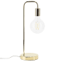 This beautiful table lamp is a perfect addition to your bedroom, home office or living room. It's great as a powerful reading light thanks to the visible bulb and curved frame, which also gives any interior a stylish industrial and modern vibe. The minimalistic shape is visually softened by the rounded corners to create a bold yet subtle composition, while the high-gloss gold finish complements the whole look. Details: Color: Gold. Main material: Metal. Weight: 1 Assembly: Does Not Require Assembly