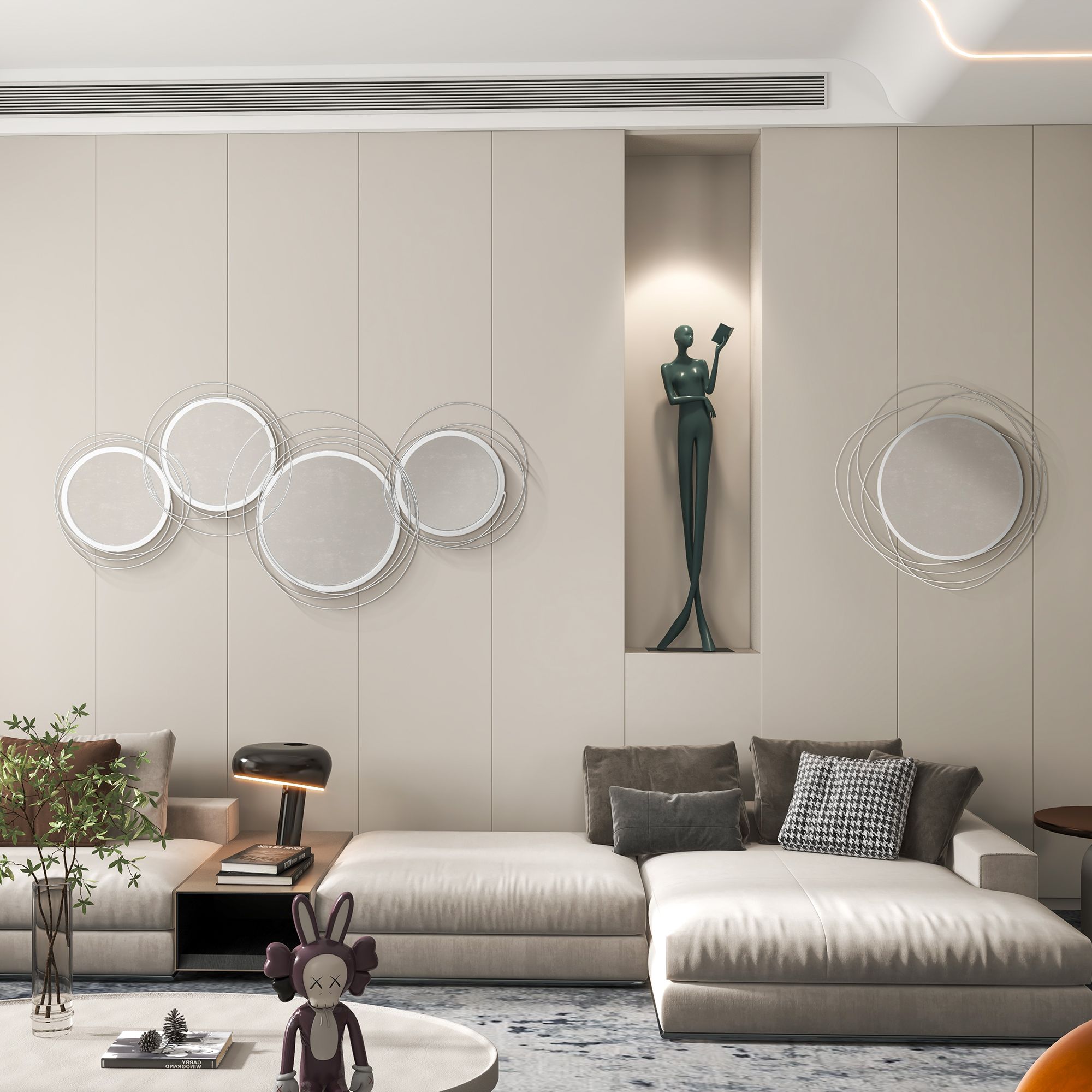 Metal Wall Art Modern Decorative Mirror Decor Hanging Home Wall Sculptures for Living Room Bedroom Dining Room, Silver