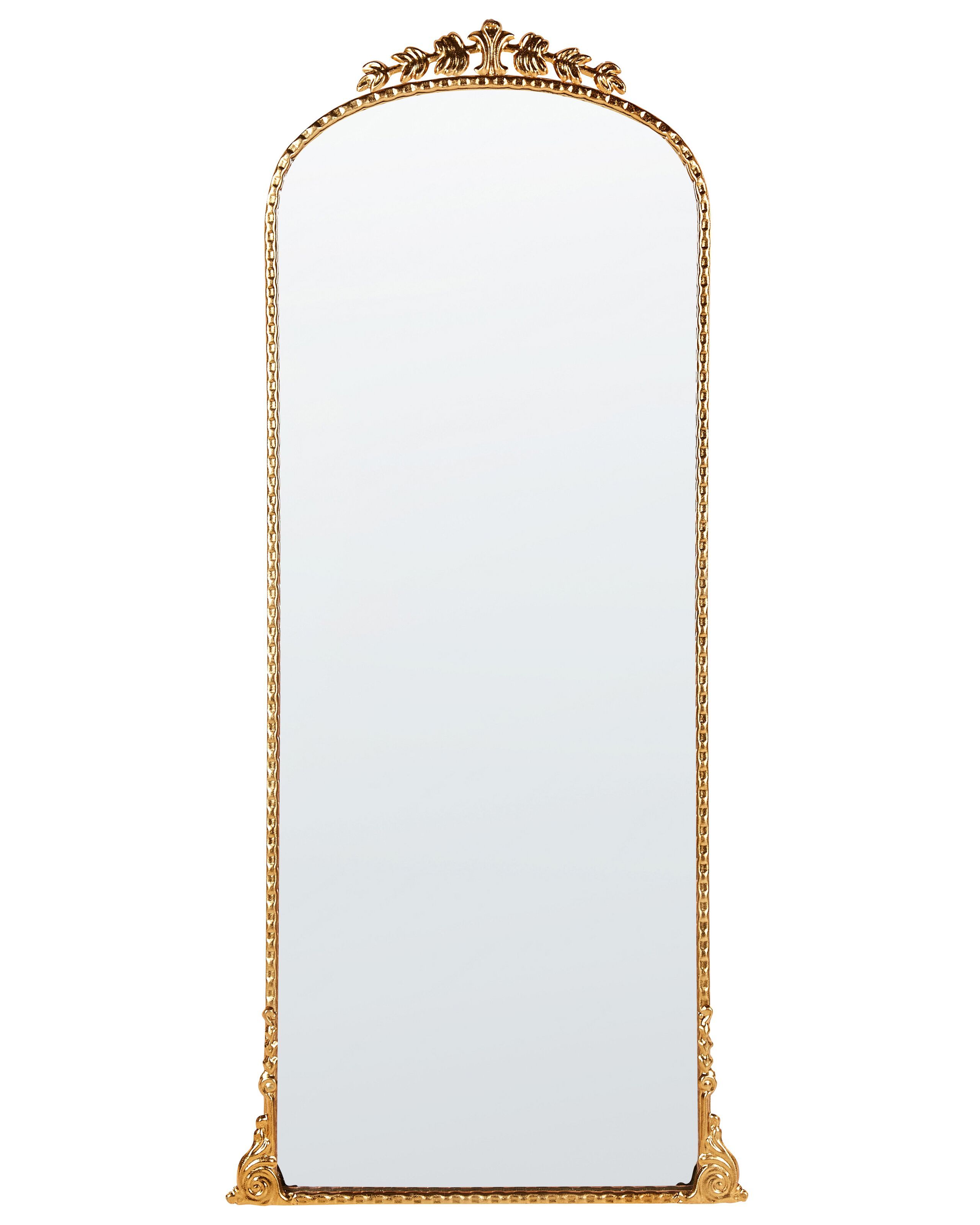 A fancy frame in a metallic shine makes this mirror draw everyone's attention to the walls. A vintage-style hanging decoration will add a touch of flair to an otherwise plain arrangement. When paired with a dressing table in the bedroom, the mirror forms a great duo, while in the hallway, it creates an impression right from the entrance. Details: Color: Gold. Main material: Iron. Additional material: MDF. Weight: 6 Assembly: Does Not Require Assembly
