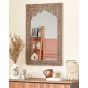 Add a Middle Eastern vibe to your surroundings with this Moroccan-inspired wall mirror. Featuring a beautiful ornate frame crafted from durable metal finished in warm copper tones, it blends seamlessly into any modern, vintage or oriental style home decors. Hang it in a living room, bedroom or hallway and instantly upgrade your interior's style. Details: Color: Copper. Main material: Metal. Additional material: Glass. Weight: 5 Assembly: Does Not Require Assembly