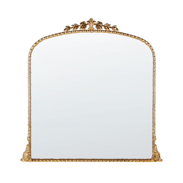 A fancy frame in a metallic shine makes this mirror draw everyone's attention to the walls. A vintage-style hanging decoration will add a touch of flair to an otherwise plain arrangement. When paired with a dressing table in the bedroom, the mirror forms a great duo, while in the hallway, it creates an impression right from the entrance. Details: Color: Gold. Main material: Iron. Additional material: MDF. Weight: 5 Assembly: Does Not Require Assembly