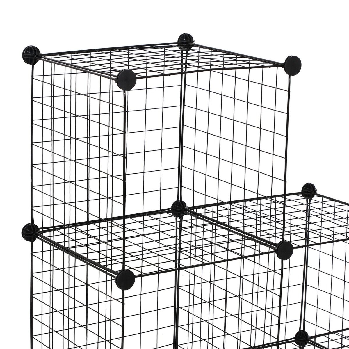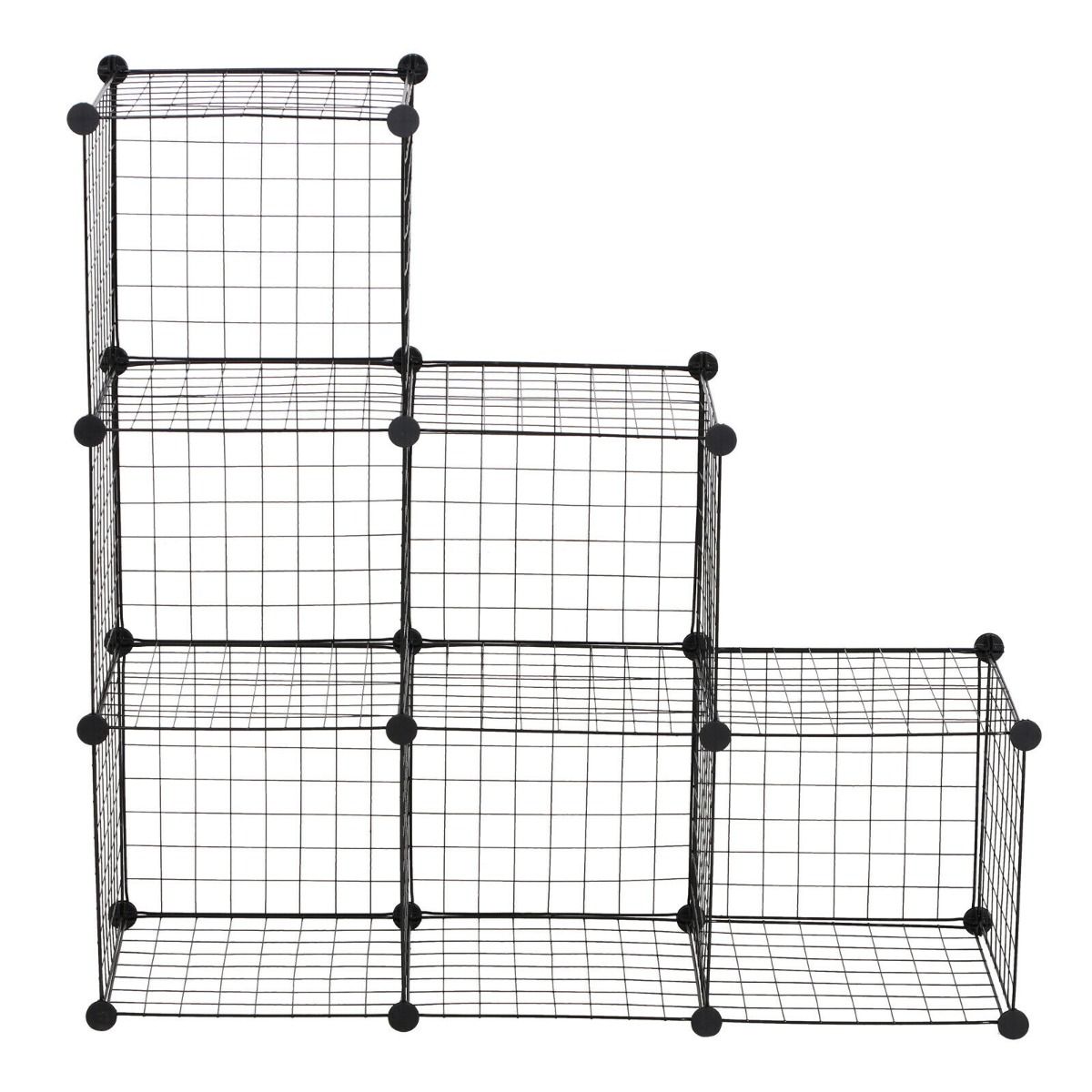 Metal Wire Panel Rack Interlocking 6 Cube Storage Display - Black