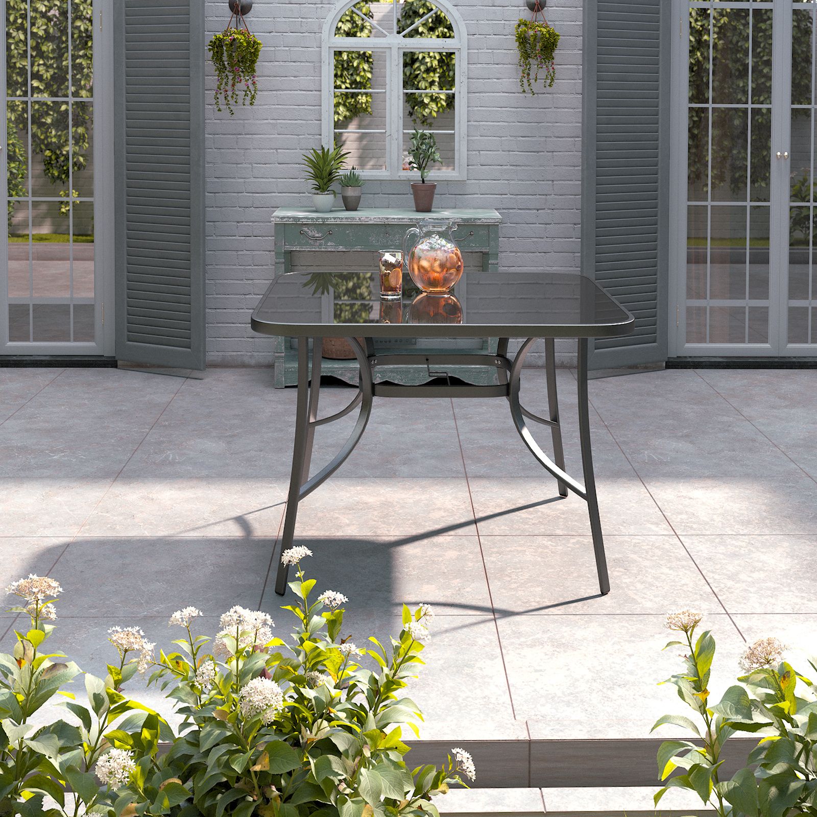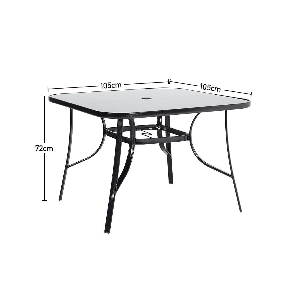 Metallic and Tempered Glass Garden Table with Parasol Hole Outdoor