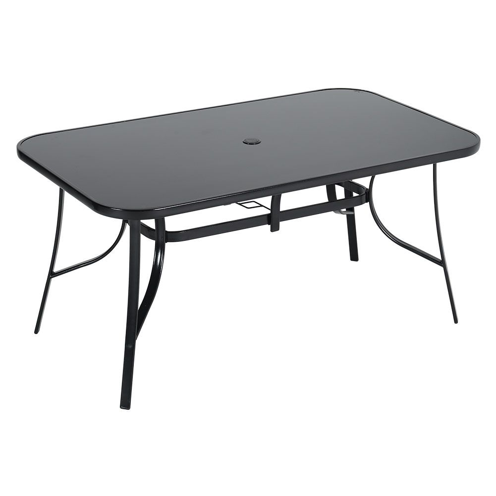 Metallic and Tempered Glass Garden Table with Parasol Hole Outdoor