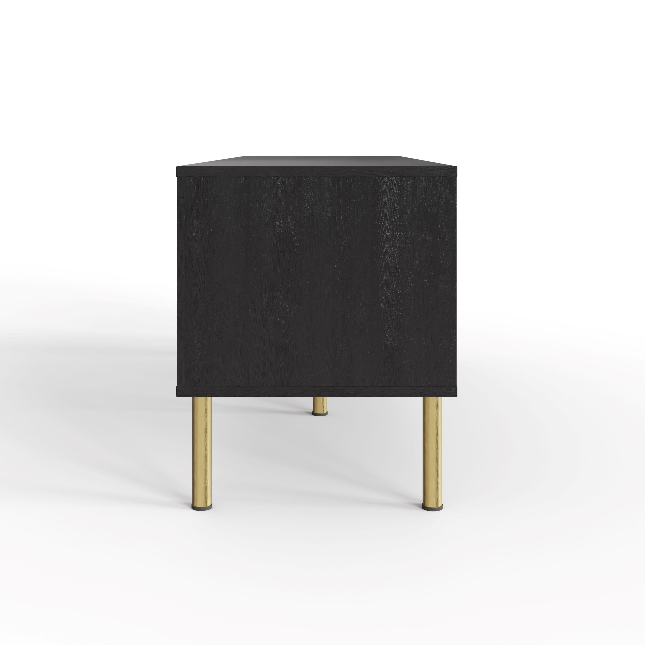 Transform your entertainment space with our Metropolitan TV Unit. The sleek black and gold color scheme, reminiscent of art deco styling, brings a touch of glamour to your home. The realistic wood grain texture and dimpled foil create a visually stunning focal point, while the integrated recesses add dynamic energy to your surroundings. Experience the perfect blend of style and functionality as you enjoy your favorite movies and shows in style.