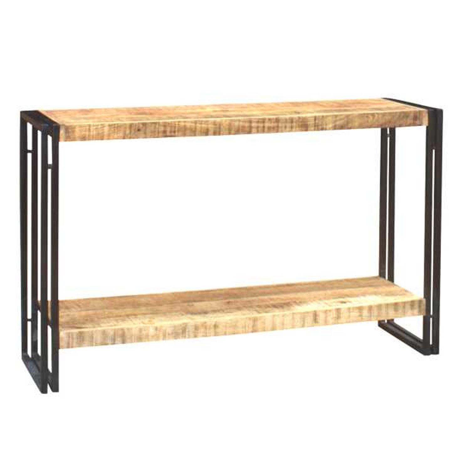 Up-cycled Reclaimed Industrial Console Table featuring wood and Metal and Shelf.