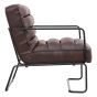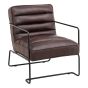Indulge in the chic allure of our armchair. With its sleek ribbed seat, aged faux leather upholstery, and slender metal frame, it exudes both comfort and style. Luxuriously padded with resilient sponge, it effortlessly transforms any corner into a cozy retreat. Effortless to maintain with water-resistant durability, its low-key profile adds a glamorous touch to your living space.