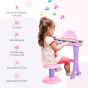 Mini Electronic Organ Piano W/Microphone and Stool-Purple/Pink