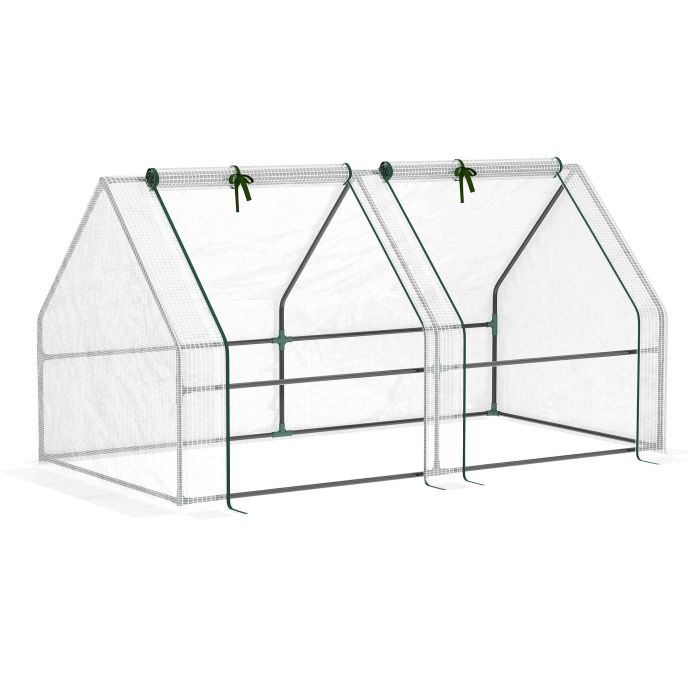 Mini Small Greenhouse with Steel Frame & PE Cover & Zippered Window Poly tunnel Steeple for Plants Vegetables, 180 x 90 x 90 cm, White