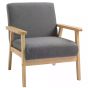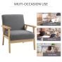 Minimalistic Accent Chair Wood Frame w/Thick Linen Cushions Wide Seat Mid Century Armchair Home Furniture Bedroom Office Grey