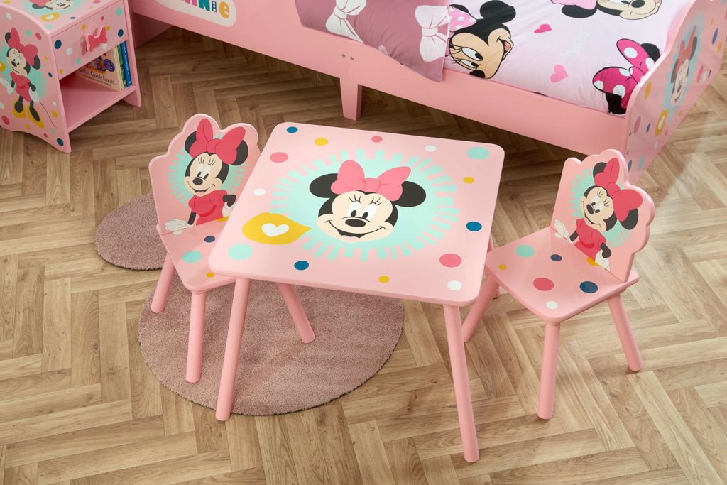Create a delightful and playful space for your child with the Minnie Mouse Table with 2 Chairs. This adorable set features an iconic Minnie Mouse design and charming pink color, adding a touch of enchantment to any room. The set includes one table and two chairs, providing the perfect space for playtime, arts and crafts, or enjoying snacks. Embrace the magic of Minnie Mouse with this delightful and functional table set, making every activity a whimsical adventure.