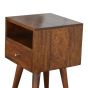 MINTO Small Bedside Table Chestnut Wood Storage Unit - Medium Wood
