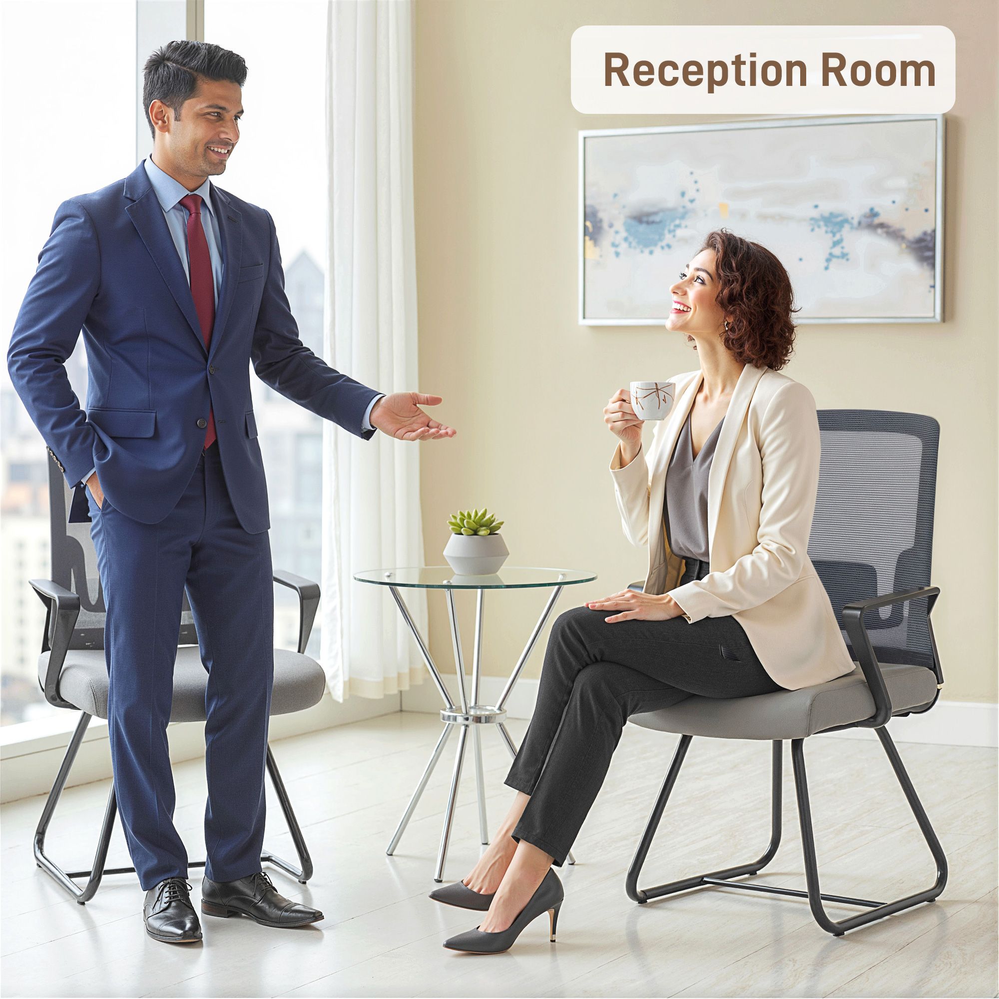 MIRAVELL Mesh Fabric Office Chair for Waiting Room with Metal Base - Dark Grey