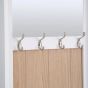 - Four chrome coat hooks for hanging coats, scarves, and bags