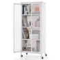 Mobile 2 Doors Food Pantry Cupboard Storage Cabinet with Wheels-White