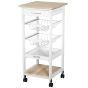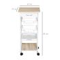 - MULTIPLE STORAGE OPTIONS: This kitchen cart features a storage drawer for small kitchen accessories and utensils, a slide out wire storage basket, 2 pull out trays and a fixed shelf. Each storage tray can be used us an independent serving tray.