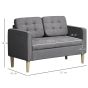 Modern 2 Seater Sofa with Hidden Storage, 117cm Tufted Cotton Couch, Compact Loveseat Sofa with Wood Legs, Grey