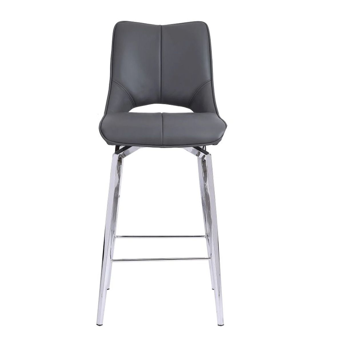 Modern Bar Stool with Chrome Legs and Stitching Detail - Dark Grey