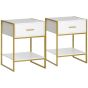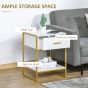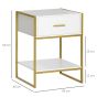 Simple, sophisticated style comes in the form of this bedside table, from HOMCOM. It blends together a gold tone frame with a white body - a furniture piece which matches easily with lots of different decor. The design comes with a top drawer, bottom shelf and flat top - plenty of storage room. The frame is made from steel for strength, with a matching slimline handle to open and close the drawer easily.