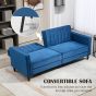 Modern Convertible Sofa Futon Velvet-Touch Tufted Couch Compact Loveseat with Adjustable Split Back, Blue