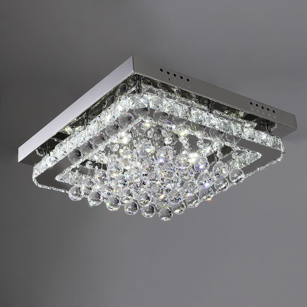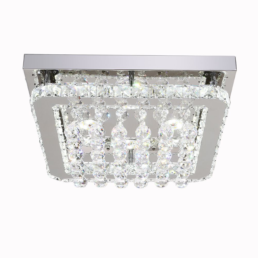 Elevate your home with 's exquisite light fixture. Crafted from clear crystal with brushed chrome detailing, its squared outline harmonizes with cascading crystal droplets. Light dances through, creating a mesmerizing tapestry, ideal for small spaces aspiring to make a chic statement.