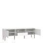 The simple yet appealing includes three media compartments and one drawer including one shelf behind each door for additional storage.