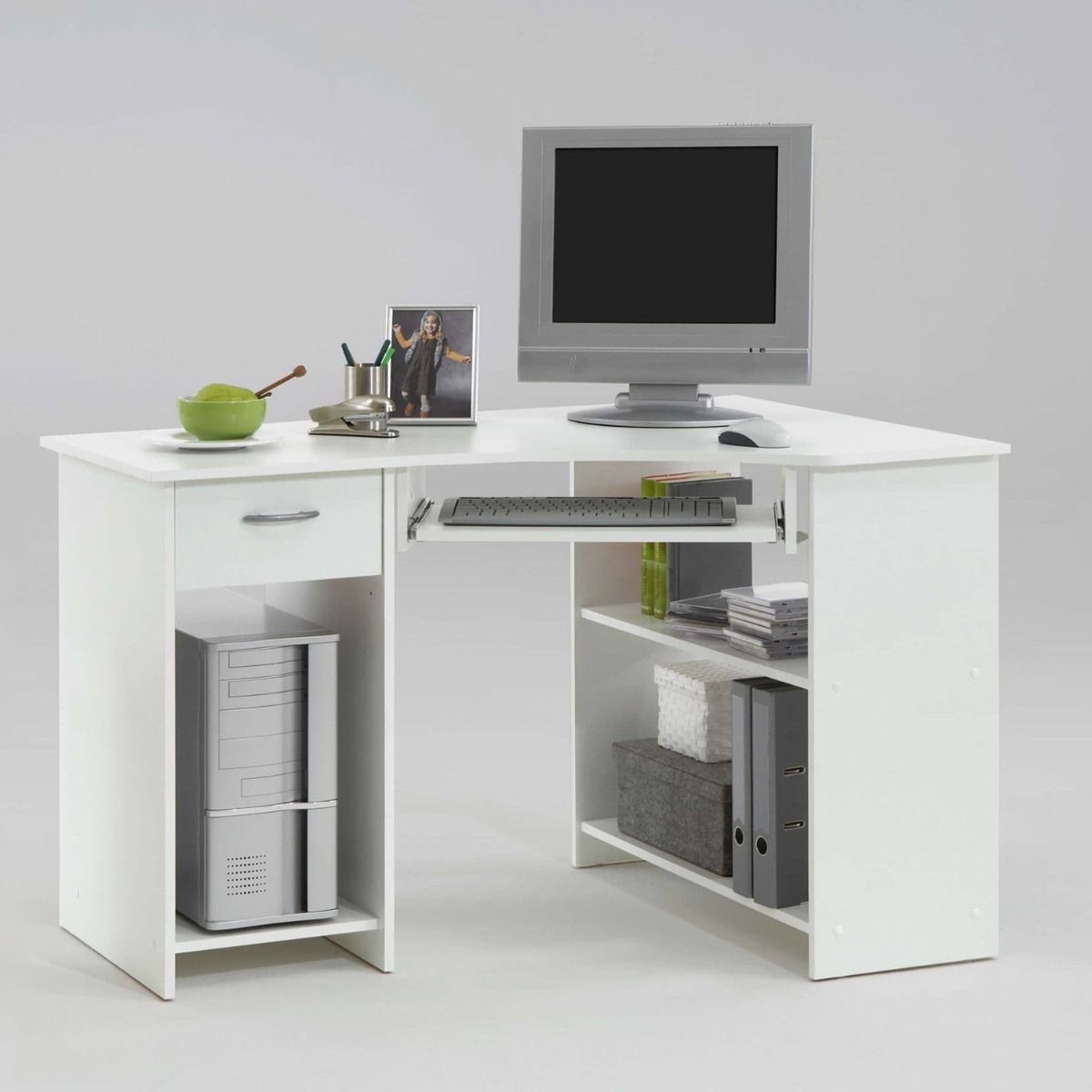 Modern Design Corner Computer Desk with Drawer, Shelves and Pull-Out Keyboard Tray - White